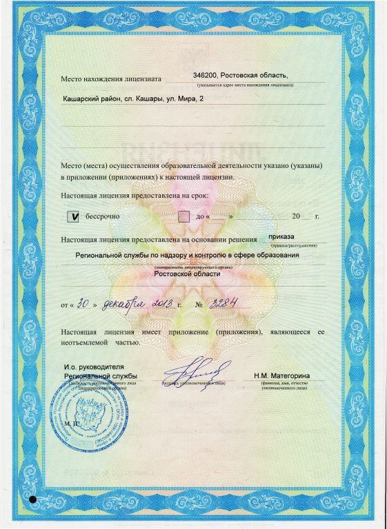 | Адрес местонахождения образовательной организации* | 346200 Кашарский район, сл. Кашары, ул. Мира, 2 |